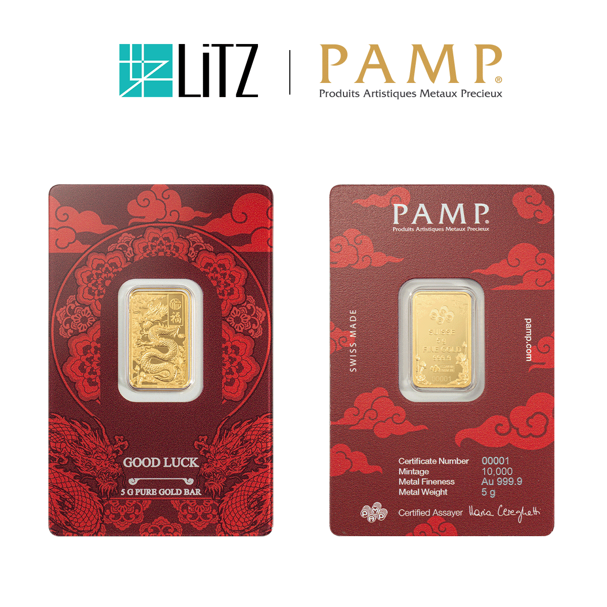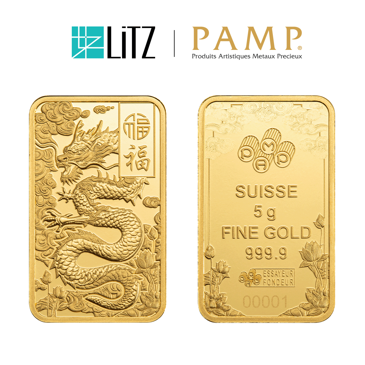 [5 gram] LITZ PAMP Suisse Good Luck Yellow Dragon Limited Edition Gold Bar (999.9) PG052